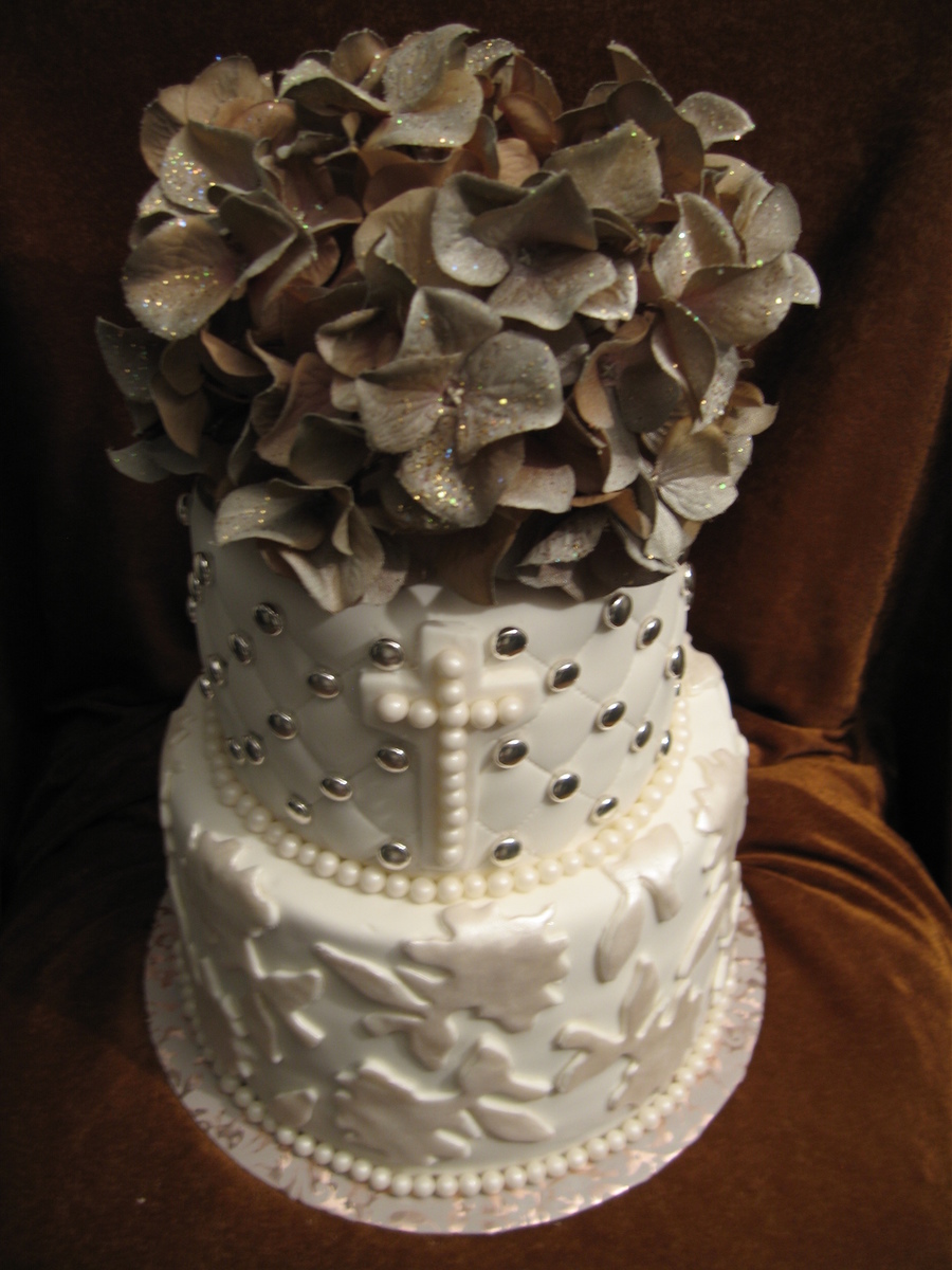 Topper is silk hydrangea that I spray painted with gold paint and then added glitter.