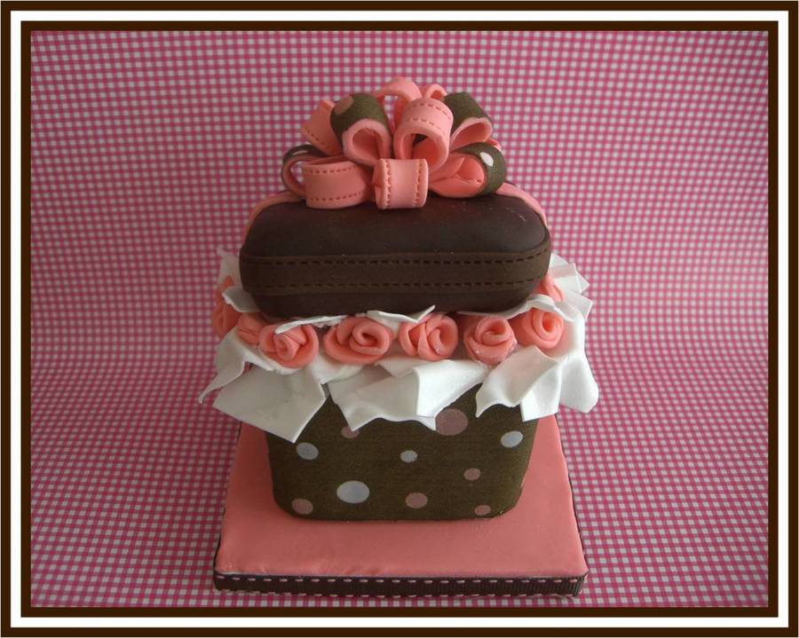 3 x 3 inch chocolate mini cake with transfer sheet on the bottom and also in the bow. I love making mini cakes.