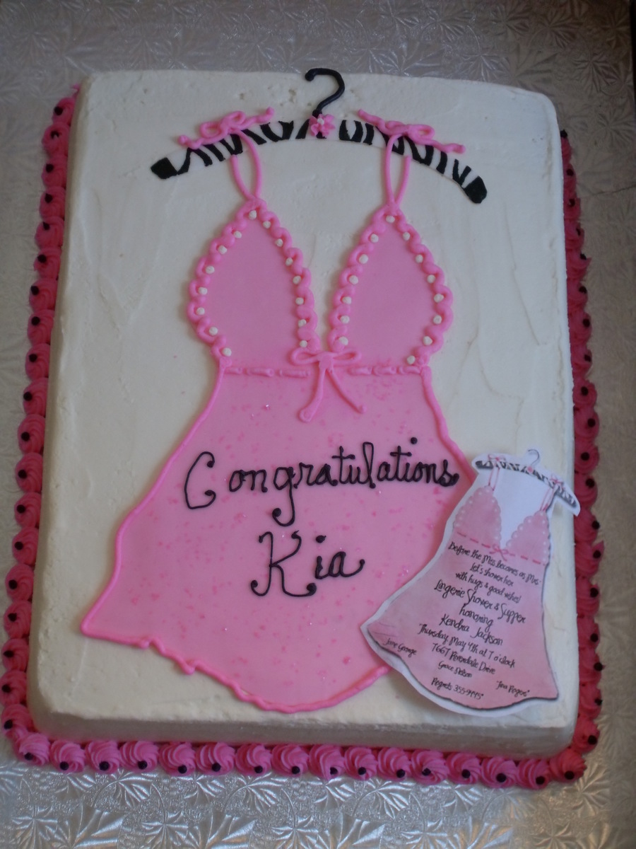 Lingerie Bridal Shower cake to match invitation......real strawberry filling and vanilla cake with buttercream icing. and fondant details....enjoy!