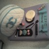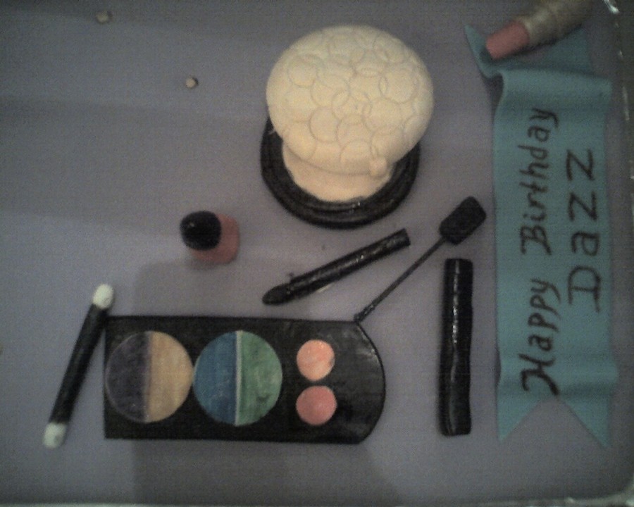 vanilla cake with dark chocolate ganache. Made for Dazz 12th B-Day. Makeup bag is triple chocolate with chocolate ganache.