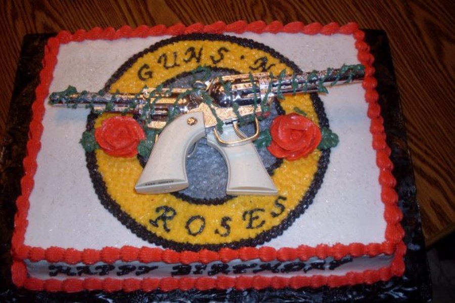 Had a request for a Guns N Roses cake and this is what I came up with. Everything is buttercream except for toy guns.