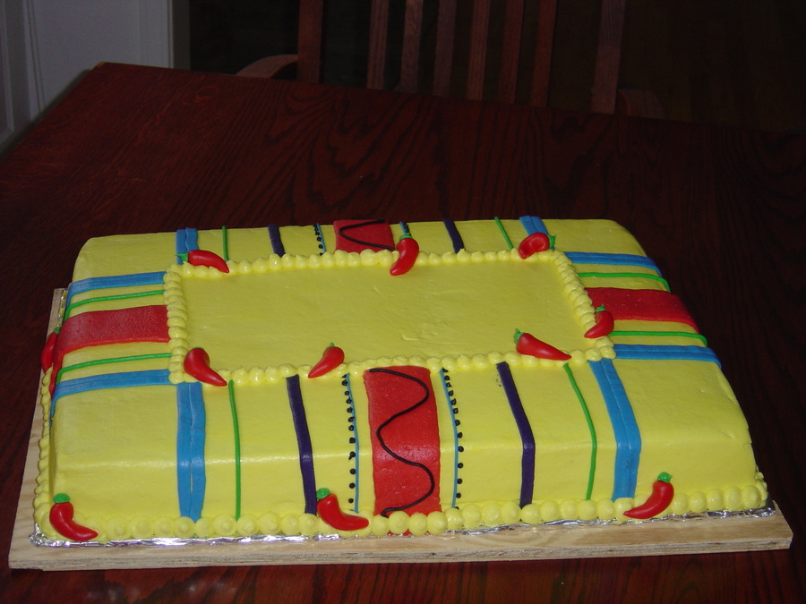 Sheet cake for teachers' dinner at parent/teacher conferences. All BC except for fondant chilis. Copied cake by shortcakery, but did all BC, instead of fondant stripes.