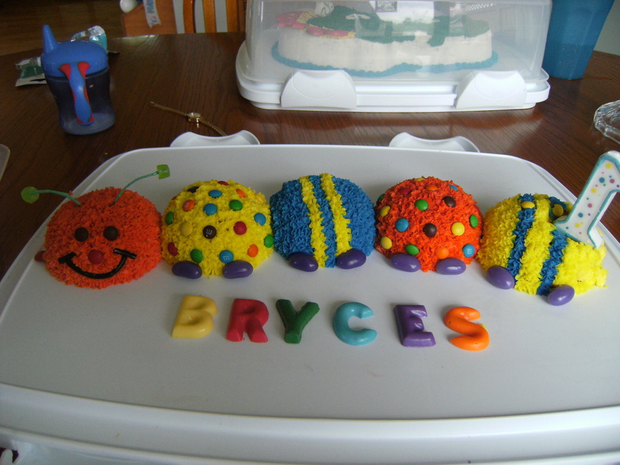 mini version of a cake from wilton, buttercream with lots of candy! lol