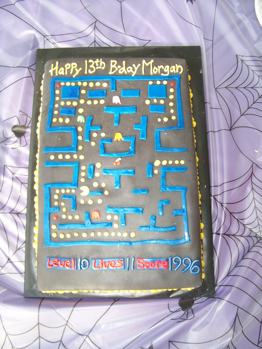 Inspired by cake made by Enilajar....thank you! My daughter wanted a cake made like the pac man game for her 13th birthday. Pound cake with BC and MMF. Lots of fun to make!