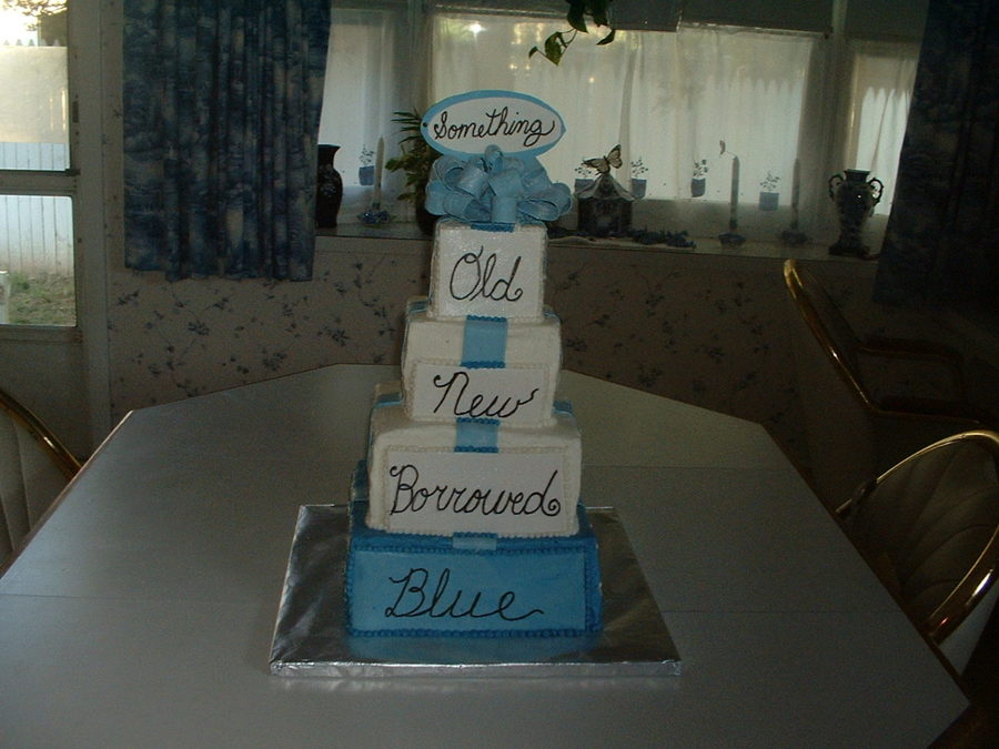 This was designed to match favors of "Something old...new ...borrowed ...blue"