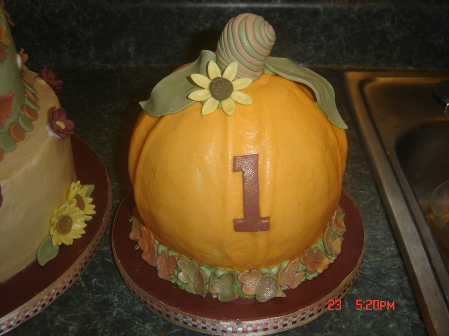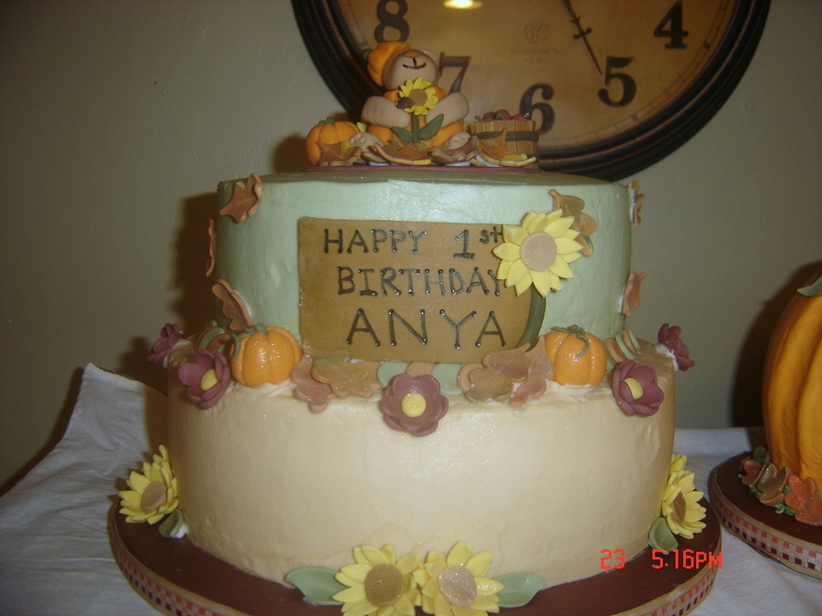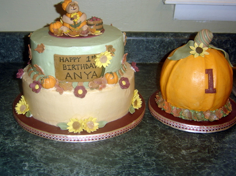 This is a fall first birthday and smash cake for a friends daughter. Chocolate wasc with cookies and cream filling. All frosted with buttercream with MMF/gumpaste details. Thanks for looking!