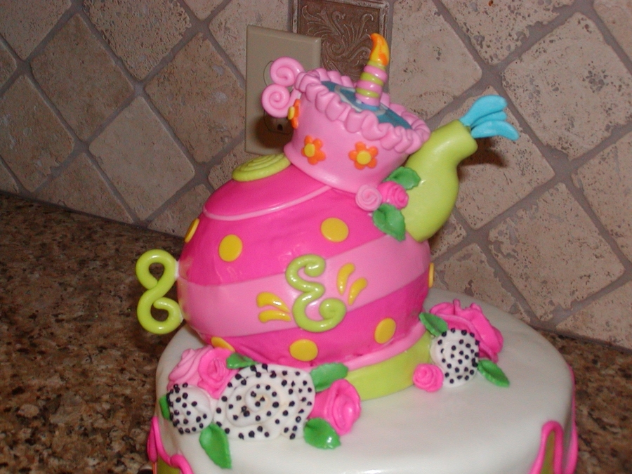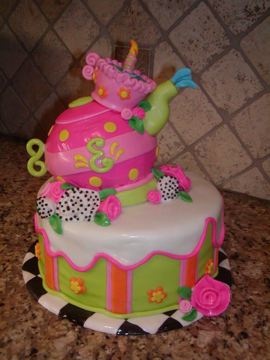 This was my first teapot...it's for a little girl named Elizabeth. Her mom gave me free reign on the design, so this is what I came up with. It was a lot of fun to do!