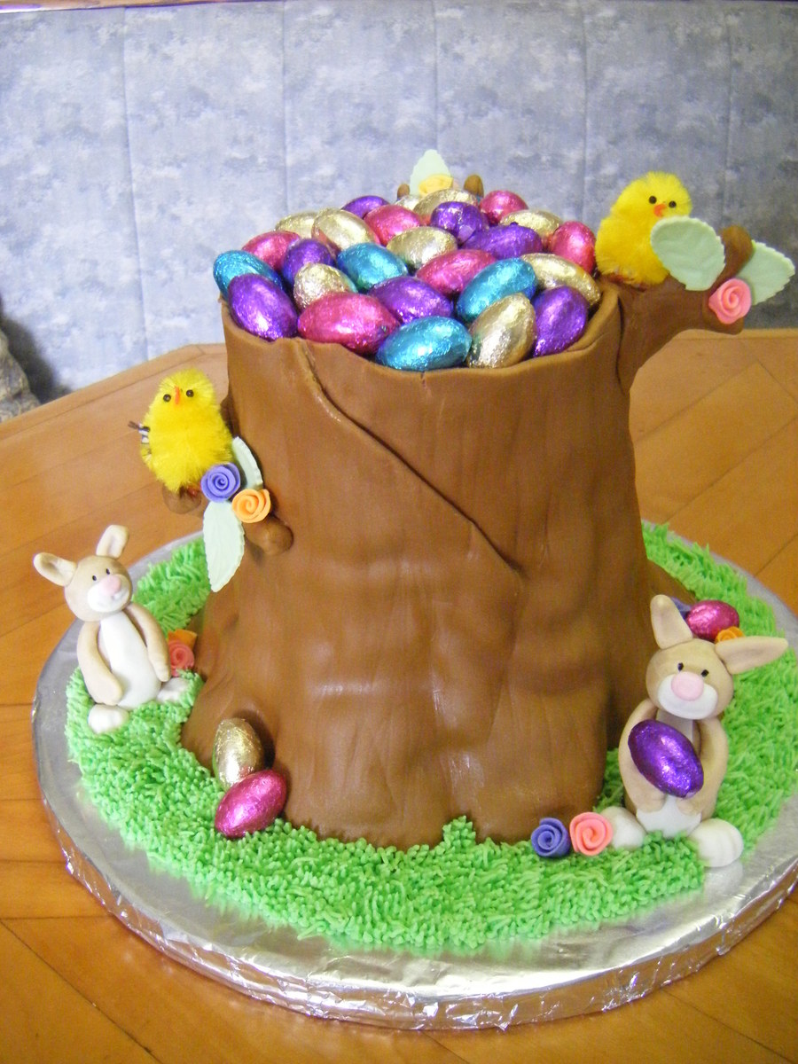 This cake was inspired by others on CC! Chocolate cake with fondant and gumpaste details, eggs are chocolate