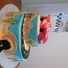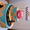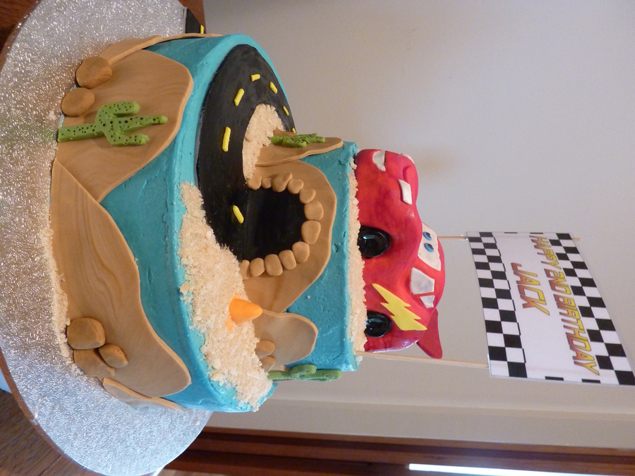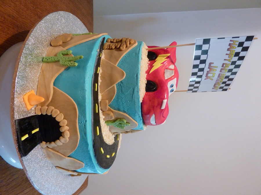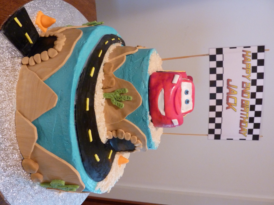 Cake is milk choc mud with a dark choc ganache in the top tier and milk choc ganache in the bottom. Iced in BC with fondant accents. The car is RK (my first time using) covered in ganache then fondant. Got my ideas from the great cakes on this site.