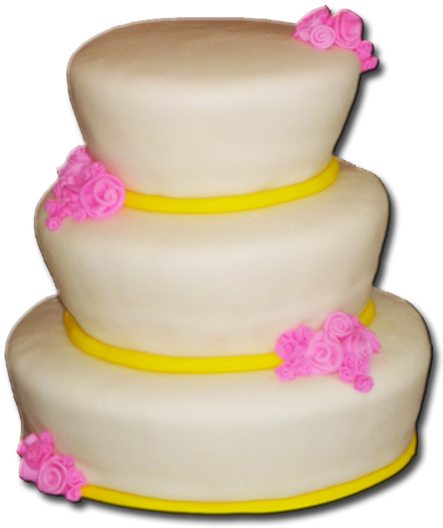 Carved round cakes for a modern look ... Fondant ribbon roses.