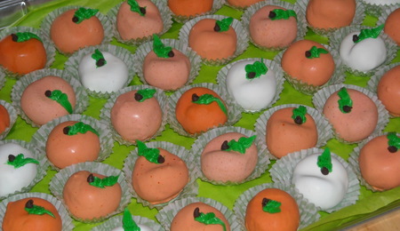 German Chocolate cake balls- german chocolate cake mix mixed with coconut pecan frosting and topped with coconut and pecans; Lemon Drop cake balls- lemon cake with cream cheese frosting topped with white sugar crystals and a lemon drop candy; Chocolate covered strawberry cake balls- strawberry cake with cream cheese frosting topped with strawberry Nerds