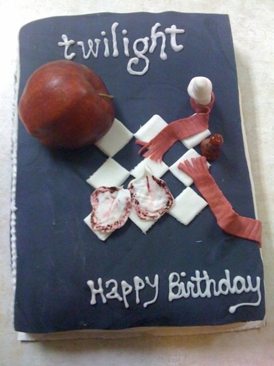This was done for a Twilight lovers birthday. Its supposed to represent all of the books. Tiramisu cake covered in fondant. with fondant details
