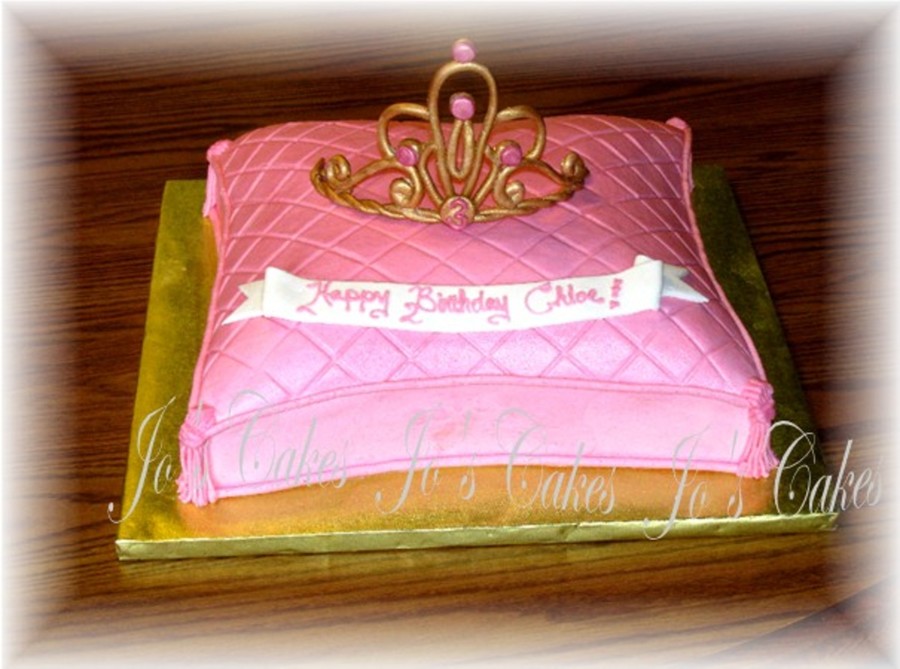 For a little girl's golden birthday. Buttercream pillow, gumpaste tiara and jewels. MMF banner.