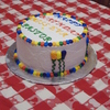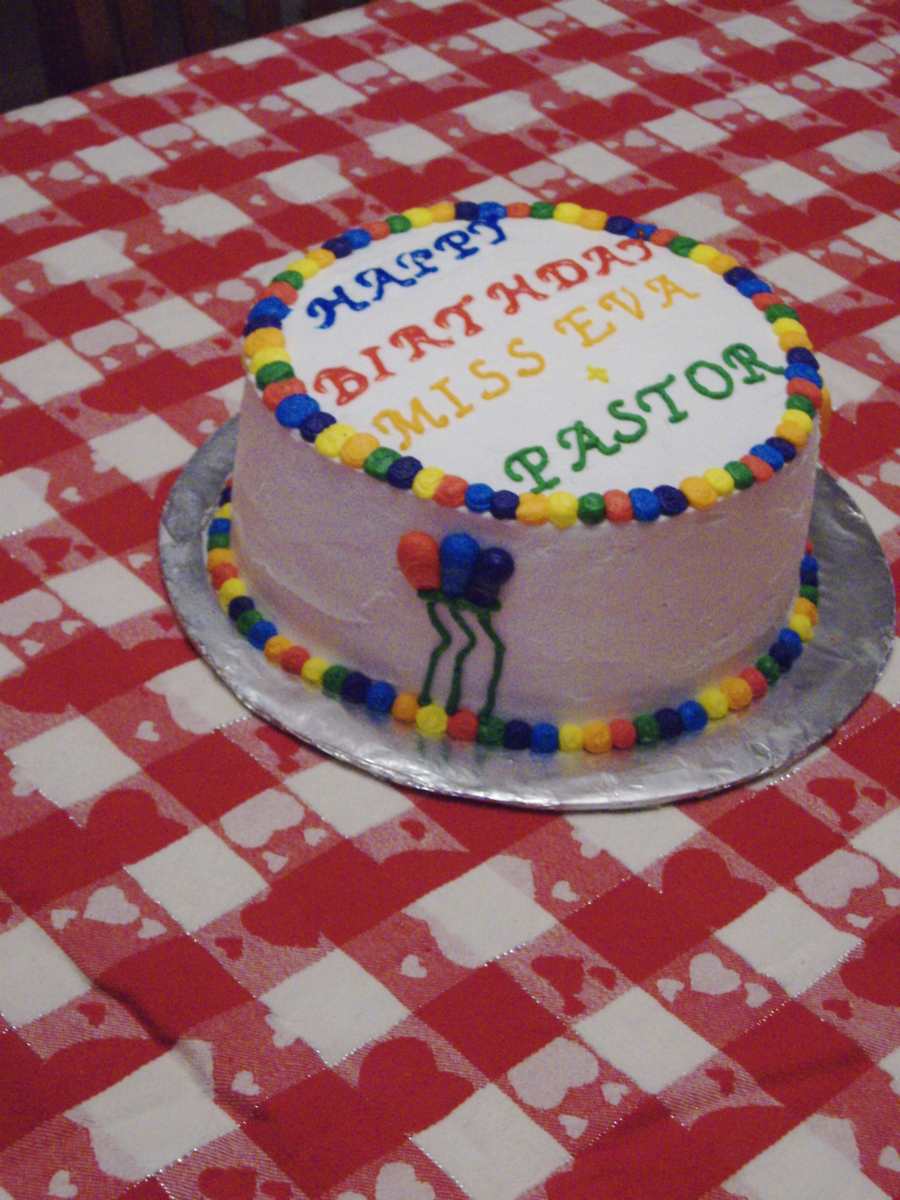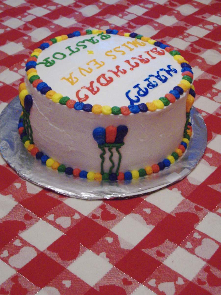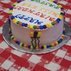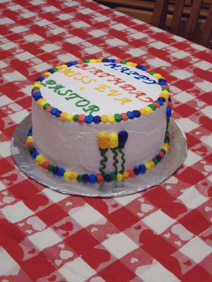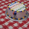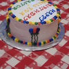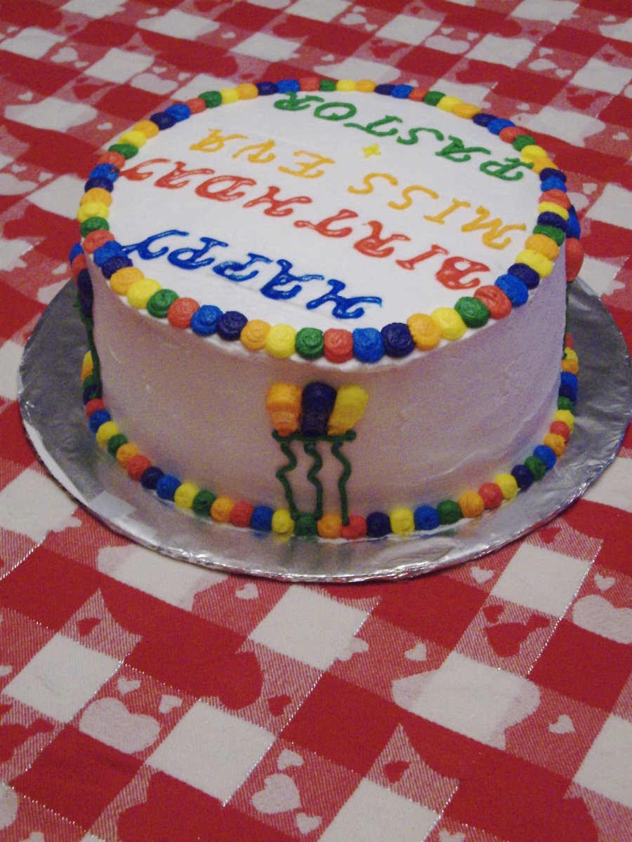 This is a vanilla cake that I made a checkerboard inside and made blue, yellow and red batter. The frosting is BC with the primary colors on the outside and the secondary colors. First attempt at piping figures on a cake.
