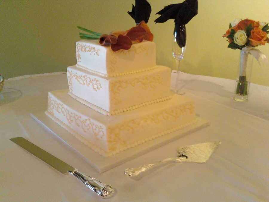 first attempt using white Chocolate Buttercream I really liked it and the flavor was surprisingly nice/ The groom designed the cake. I was impressed.
