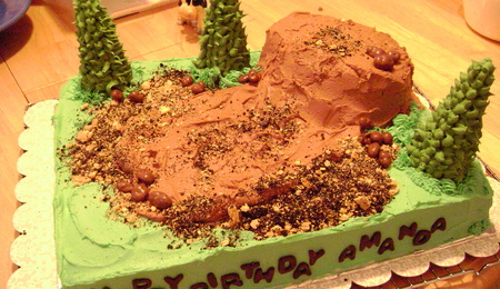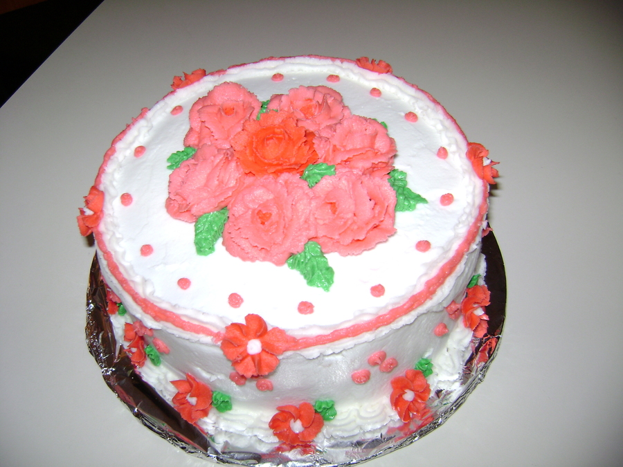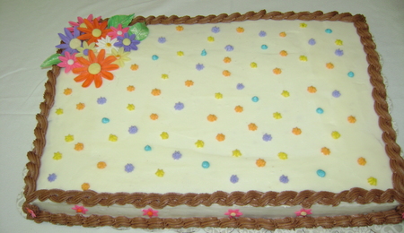 White cake with a brownie and peanut butter middle. Buttercream icing and decorations. TFL