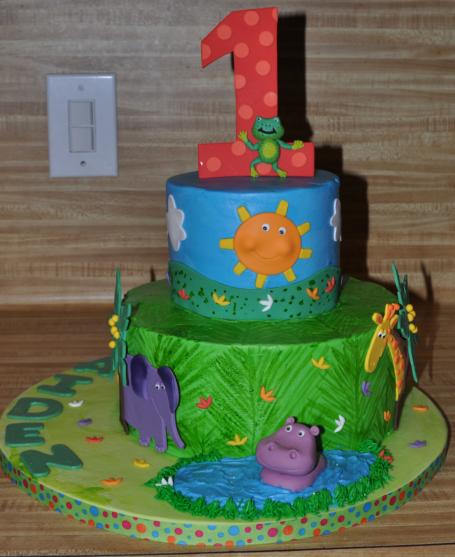 6 and 10 inch cake. Buttercream with fondant accents. Handpainted grass on to the buttercream. I loved this fun design! One of my biggest inspirations for this cake was jaklotz1's cake. TFl!!!!