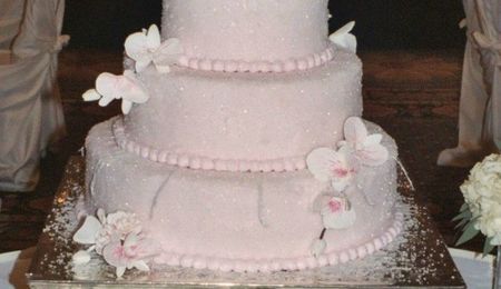Pink Wedding Cake With Gum Paste Orchids And Roses