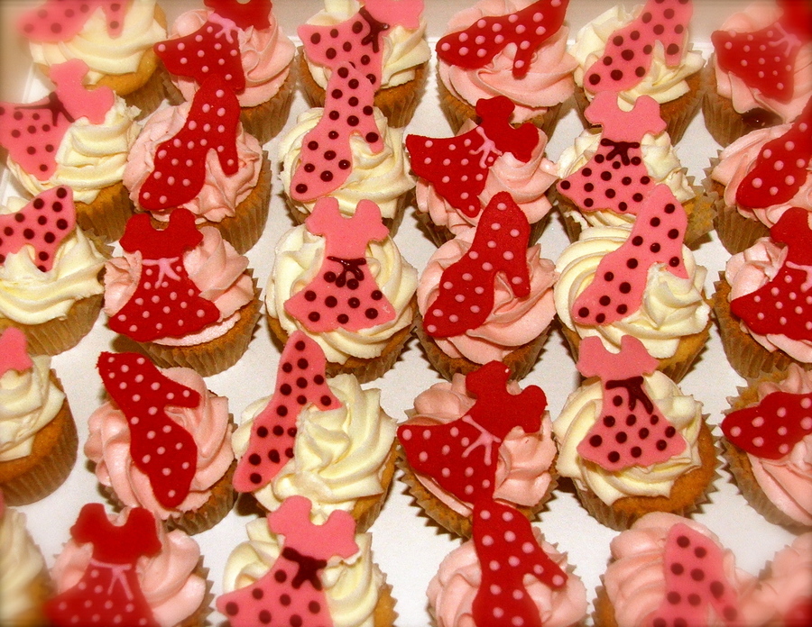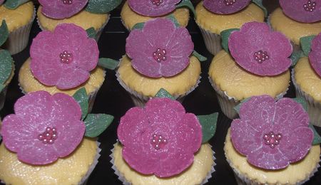 Vanilla cupcakes with vanilla b/cream. Gumpaste topers