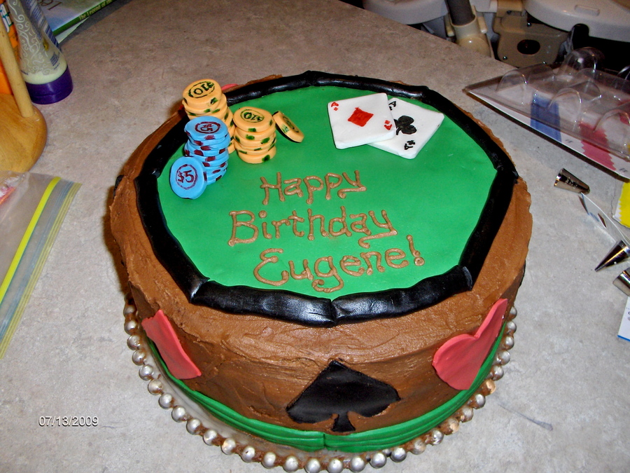 This is a birthday cake I did for my brother who is obsessed with texas hold 'em. He really liked it! It's buttercream with MMF decorations.