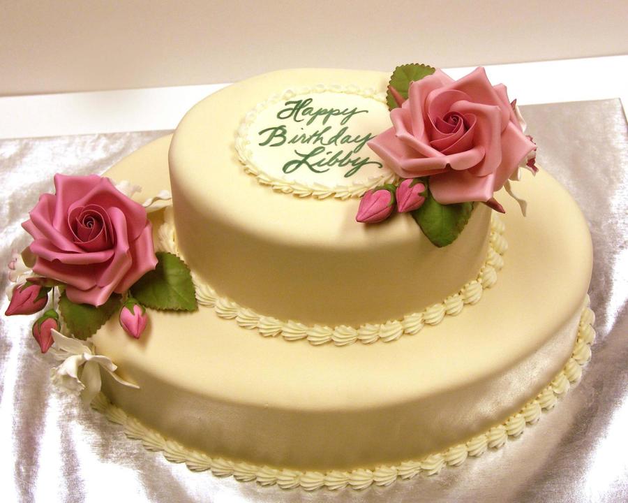 This is a cake I did for a lady's 30th birthday. The cakes were lemon pound with raspberry creme and white chocolate ganache fillings, iced in buttercream, then covered in ivory fondant with gum paste roses and orchids.