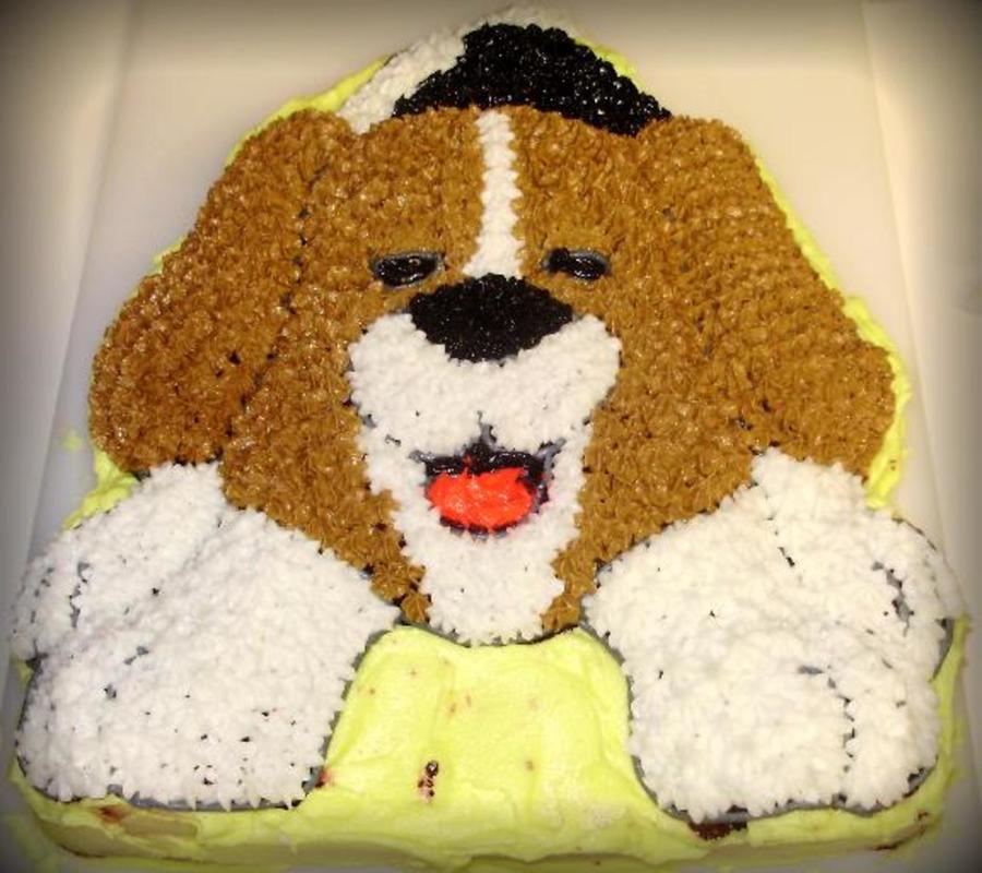 This is a cake made using one of the Wilton shaped pans. It was made for my little sister's birthday (happy 18th!) in the likeness of her pet beagle Arrow. Red velvet cake and vanilla buttercream frosting. One of my first cakes!