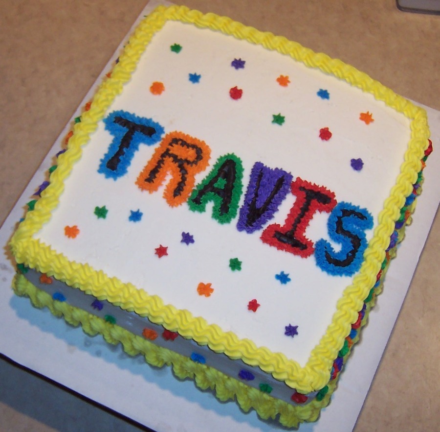 This is my first attempt at a square cake. I was disappointed in how it came out but I learned alot which is the point, right? I added my sons name instead of Happy Birthday.