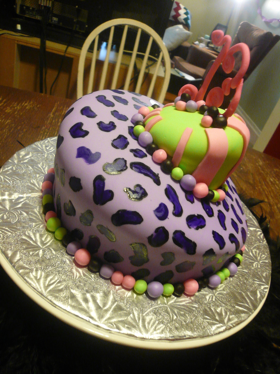 my first topsy turvy for my daughter's 13th bday-8"4" vanilla almond i made leopard cookies to match. this was SO fun to do-i would have added more whimsical touches (had to go to work)