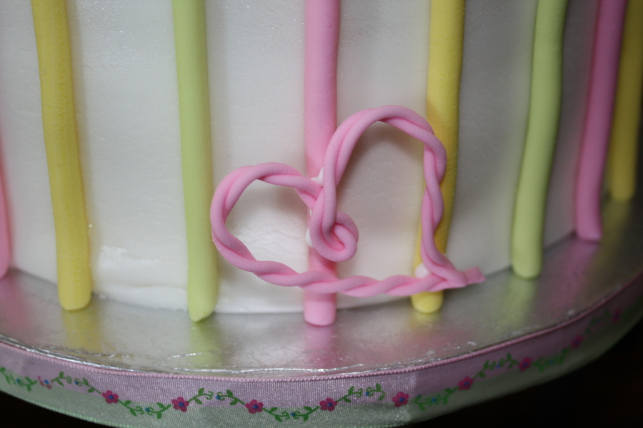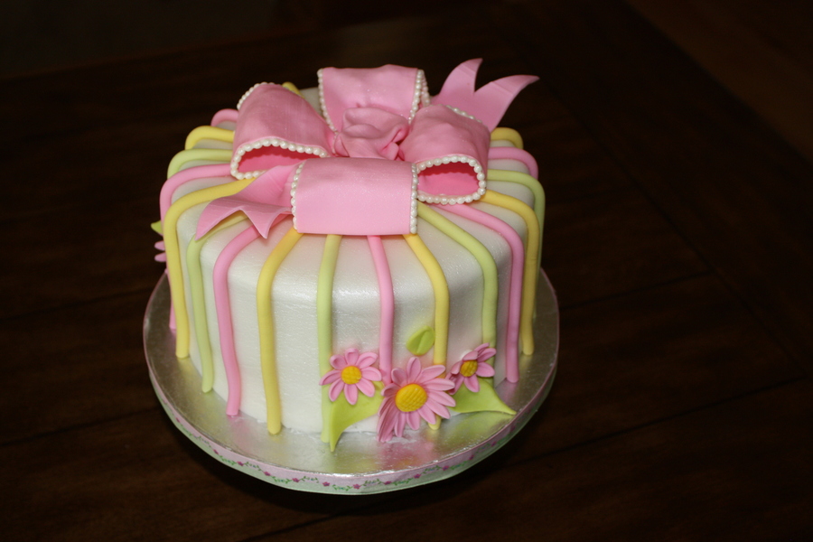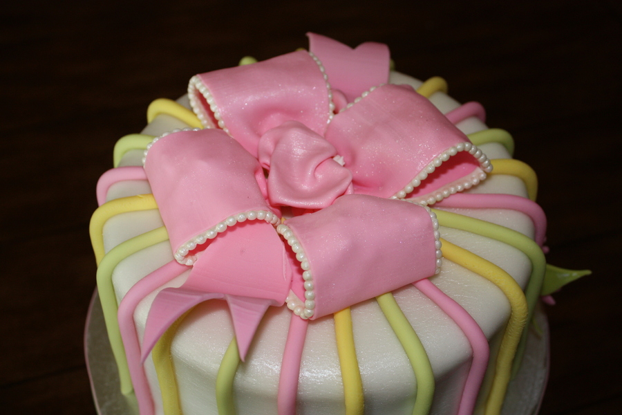 Cake made for a friend. 1st time putting pearls on bow.