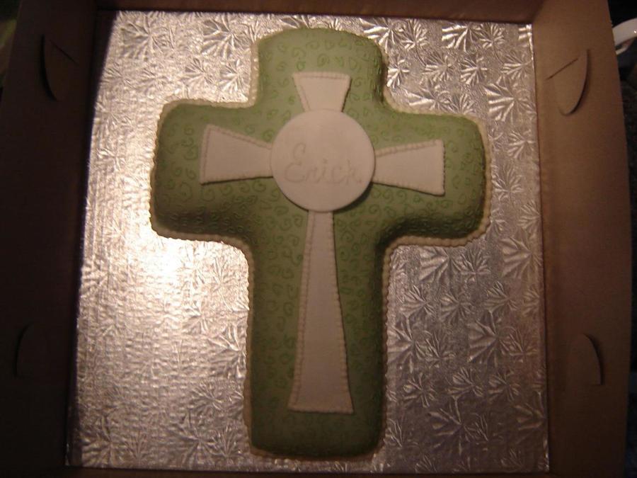 Made two cross cakes for a twins baptism. The mom picked the design from the Wilton website. The original design by Wilton is in blue.