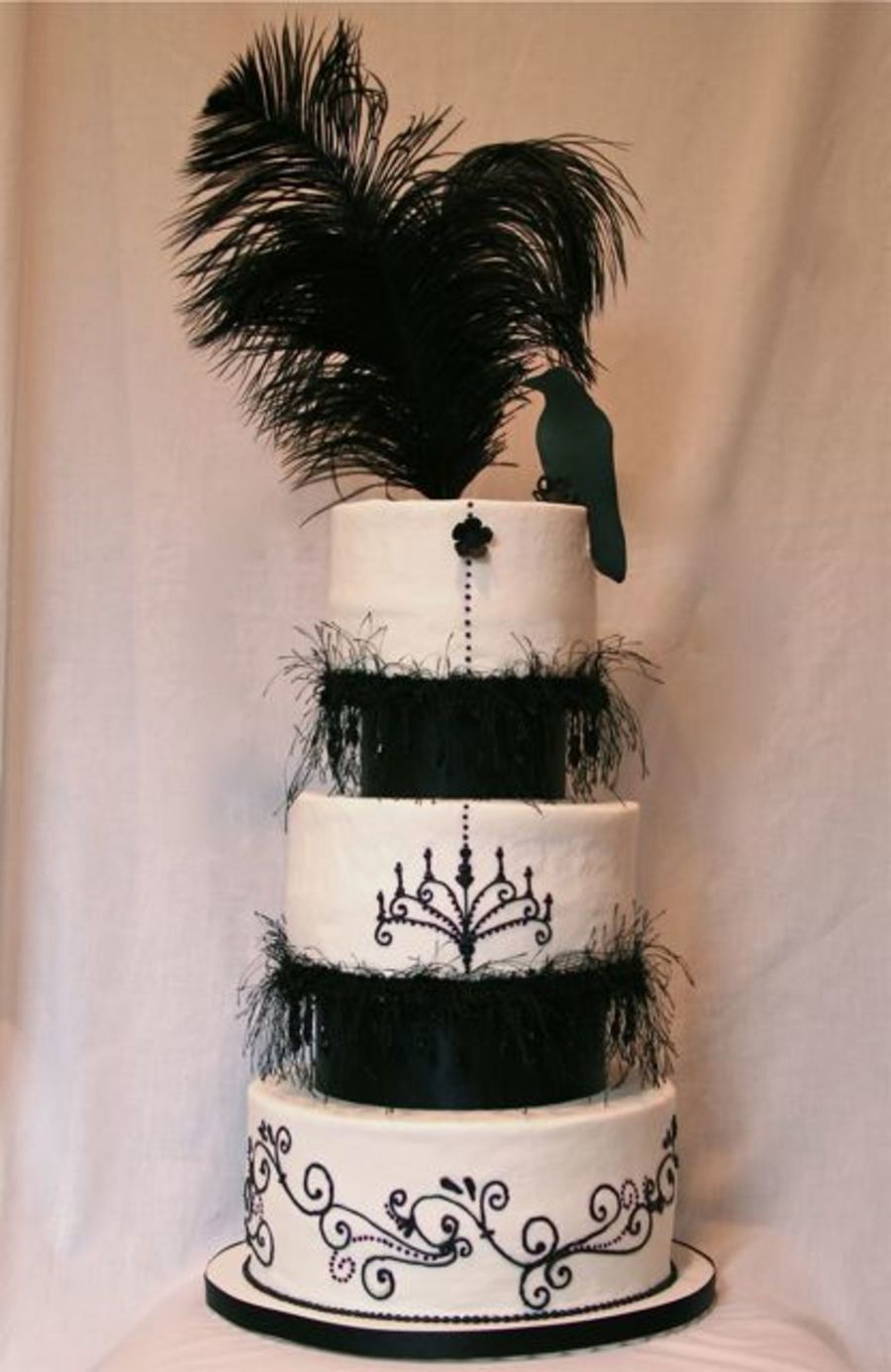 6/8/10 resting on 5/7 separators. Covered in BC. Feathers & beading inedible. Made for a Flapper/Gangster Halloween Party.