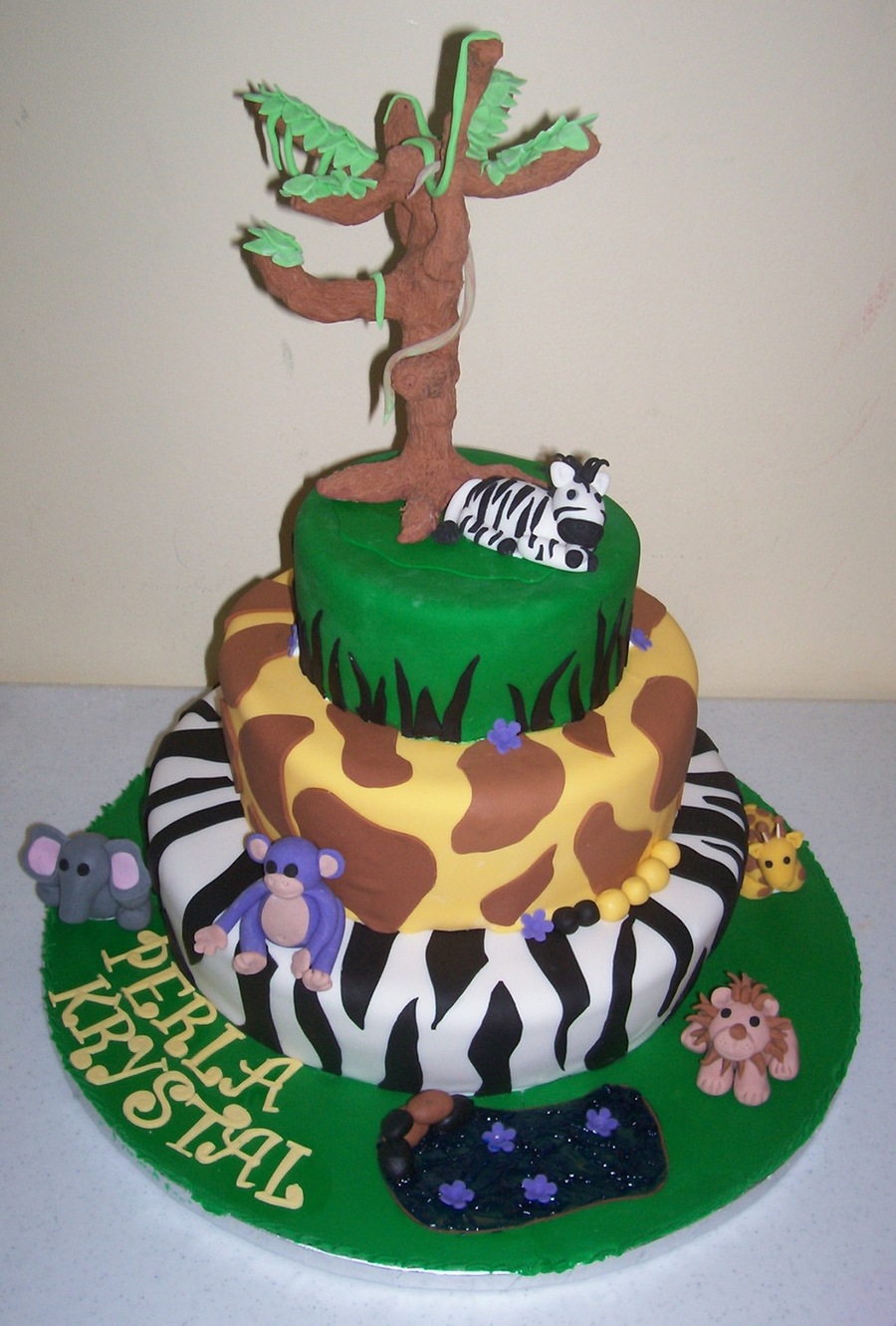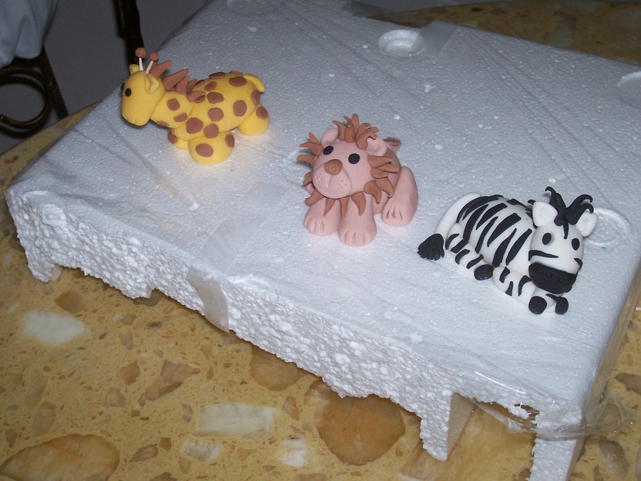All fondant with animals and tree in gumpaste. Love this cake...