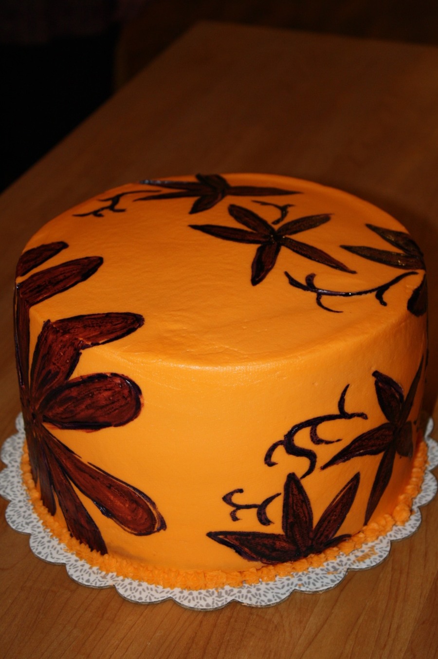 My MIL encouraged me to try a new technique on her cake, so I tried painting on the BC. I liked it, but will definitely choose a different base color in the future so that the actual paint color shows. TFL!