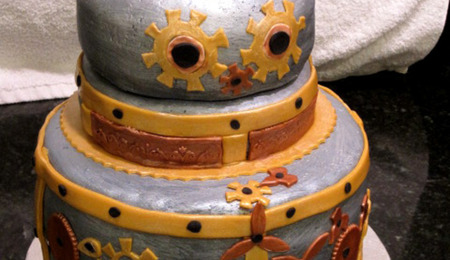 Inspired by many of you here at CC! Chocolate cake, with spiced chocolate filling and fondant covering.