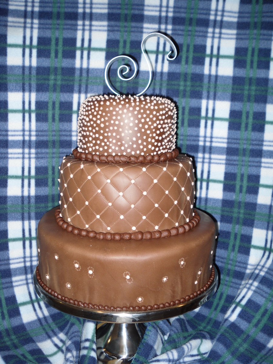 round wedding cake made with fun fetti cake and choco-pan fondant covering.