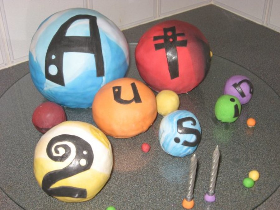my nephew austin 2nd birthday cake, a ball was his favourite thing so he got a ball cake, Choc cake orange butter cream, covered with fondant, all baked in stainless steel mixing bowls
