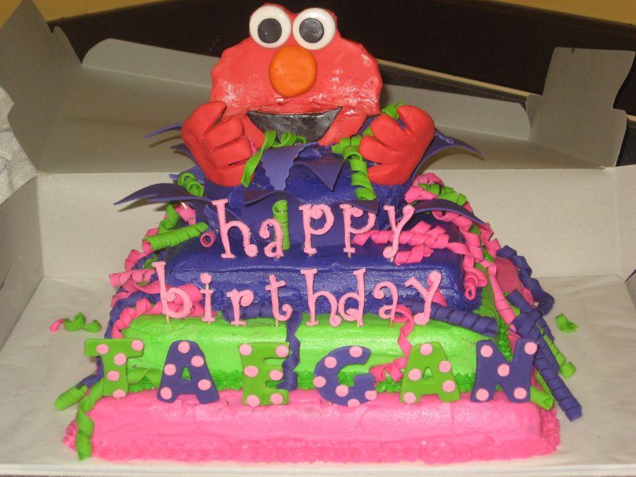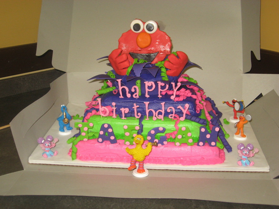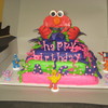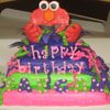 4 tiered cake, choc, & white, covered in buttercream, accents are from fondant and gumpaste. This was for my grand-daughters 2nd b-day. She was so excited.. I was looking at the wilton yearbook but didn't need it to feed that many, so I freehanded elmo and was devastated that elmo broke when I took it in to the party, I tried to fix it, but you can still see where he broke. Thanks so much for looking..