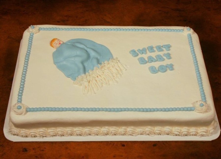 Shower cake is decorated in buttercream with fondant accents.