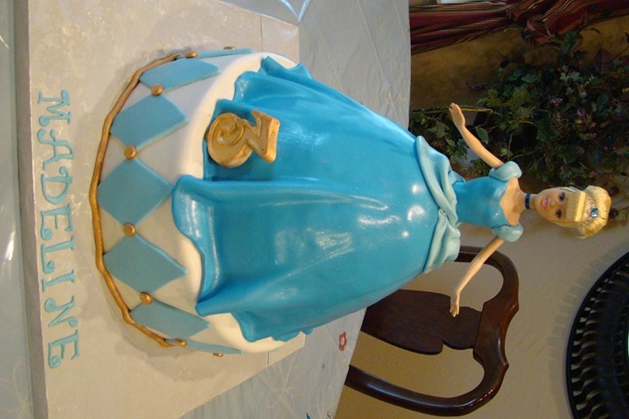 Double layer 12" bottom. Wondermold pan for Cinderella's body with a real doll stuck in. Covered in MMF with MMF accents. #2 is cand melts painted with gold luster dust