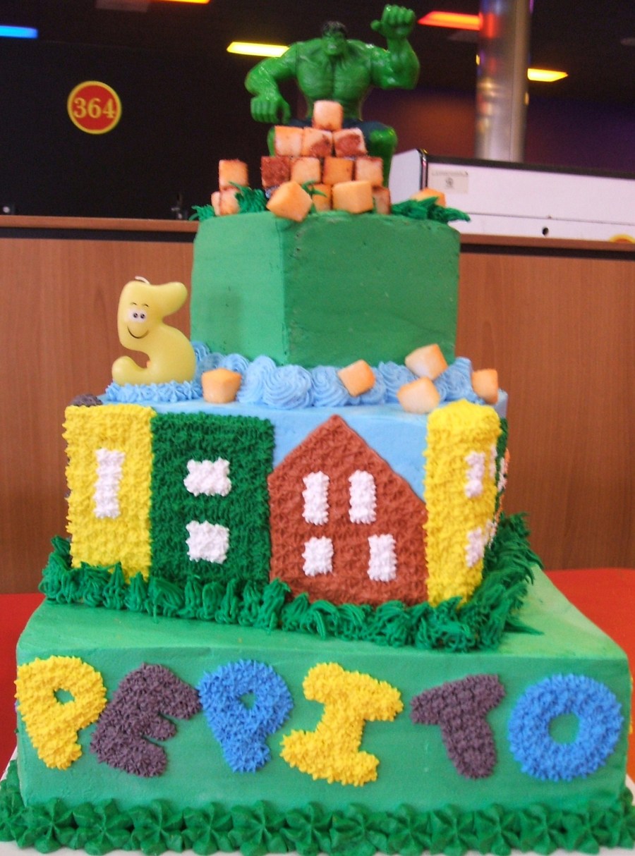 My son is a really into hulk so I made this cake for his birthday, all made out of whipped topping