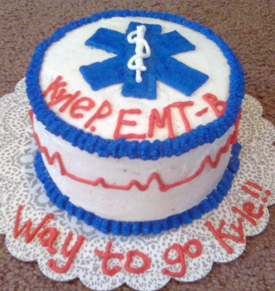 My brother just received his EMT Certification, so I thought it was a perfect chance to practice my cake skills! Needs a ton of work, but he loved it!! 3-Layer 6 in. devils food butterscotch cake w/ caramel nut filling. Used the Buttercream Dream recipe for icing and I may have found my favorite BC recipe! My brother graduates from fire academy in 4 months and I can't wait to make a cake for that!