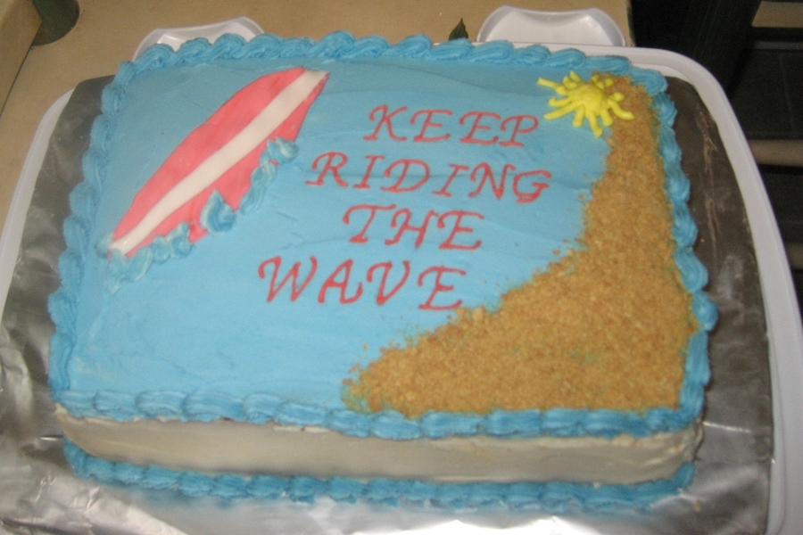 Thanks to mac95 for the idea. I made this for three of the graduates of a therapy group I led. A main theme of the group is learning to "ride the wave of emotion". It is a vanilla cake with chocolate pudding filling. The "sand" is graham cracker crumbs.