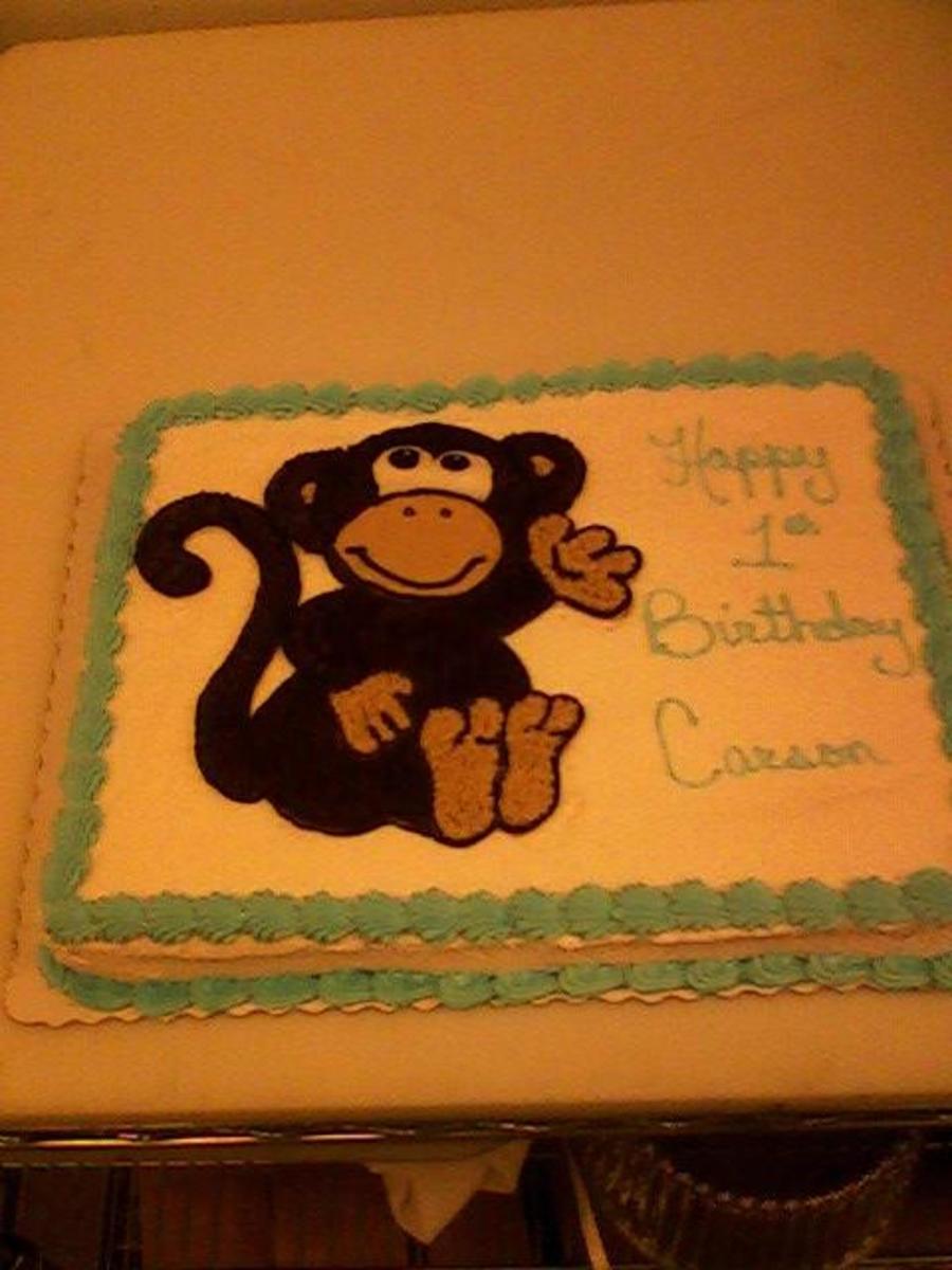 1/4 sheet cake in buttercream with a buttercream monkey