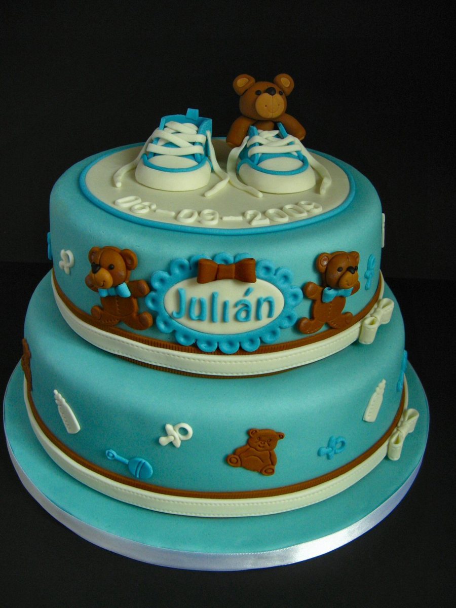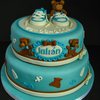 For Julian, a babyshower cake with "boyish" colours, loved making it. The little sneakers were so much fun to make and I was very happy the way they turned out. Everything is made with fondant or gumpaste. TFL!