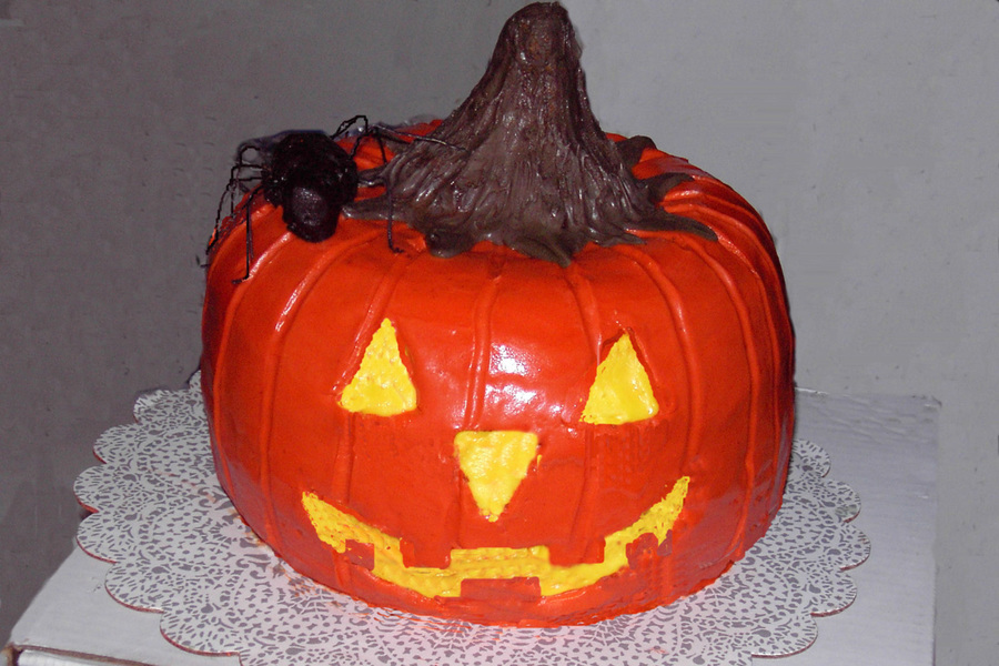 Tomatoe Soup Bundt cake w Cream Cheese Frosting. The stem baked in the center of the reverse side of the bundt pan