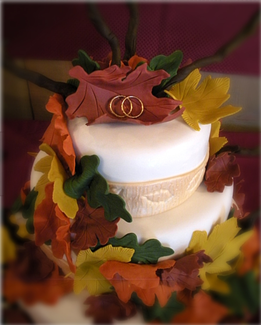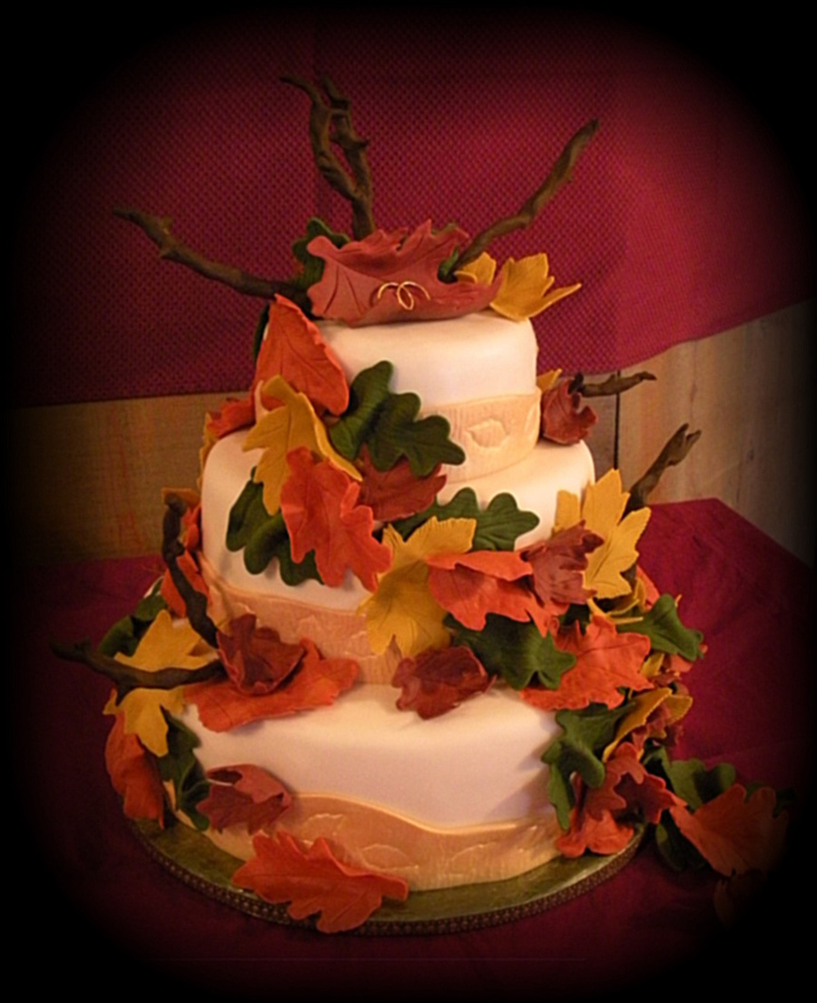 12"x9"x6" covered in MMF. All decorations - leaves & twigs made of MMF, as well. Thanks for looking!