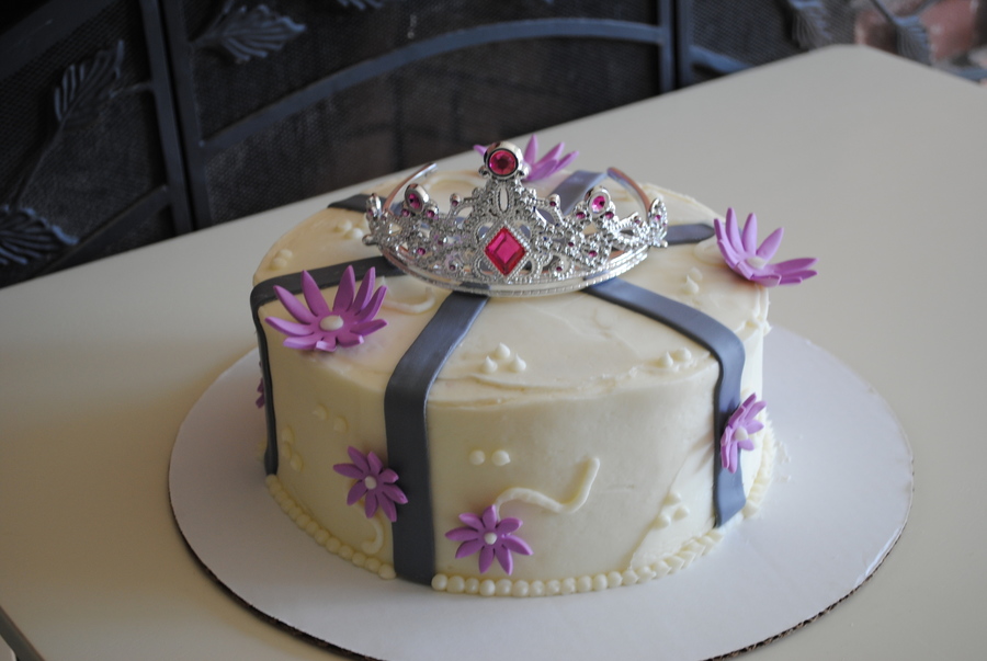 Pretty princess cake modeled after one I found here. (I can't remember whose) The party got moved up and the large gumpaste crown broke the night before, so I had to improvise. I wish the crown had been larger, so I gave the mother a plastic tiara and let her decide which to put on for the party.