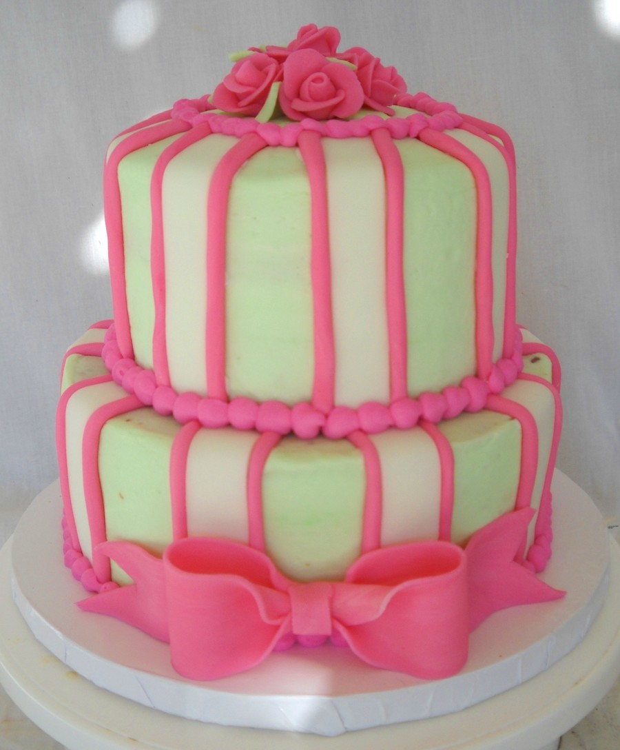 Pink & Green Stripes Tiered Cake