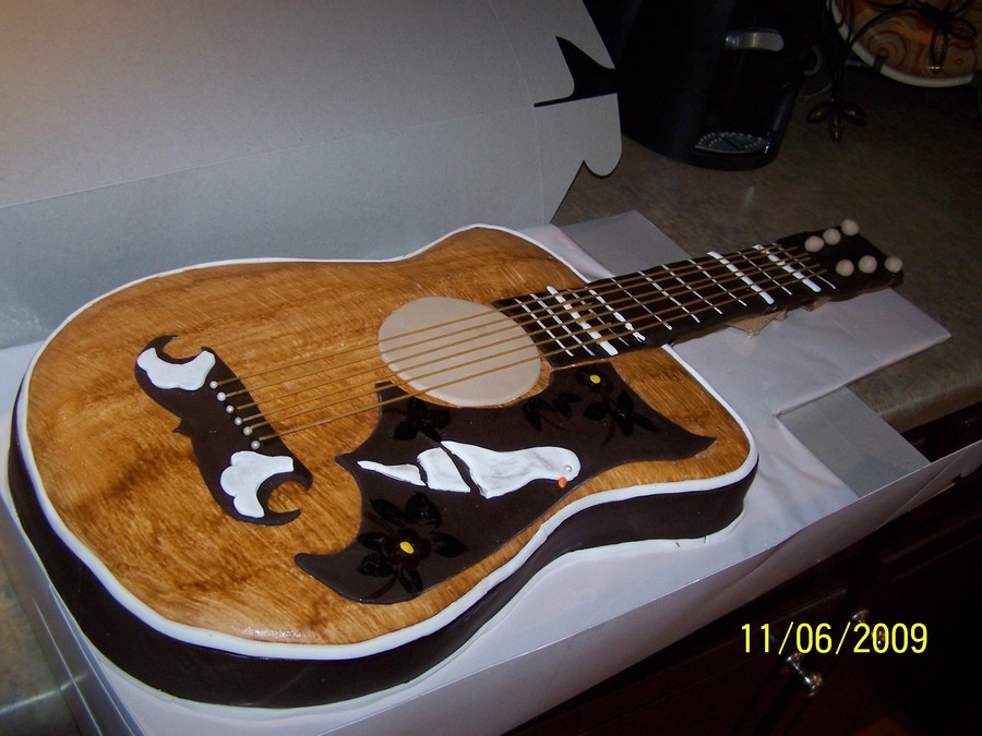 she wanted a replica of his guitar, so this is what i cam up with. i used spaghetti noodles for the strings initially and ended up changing them to wire with string wrapped around it(bought that way)