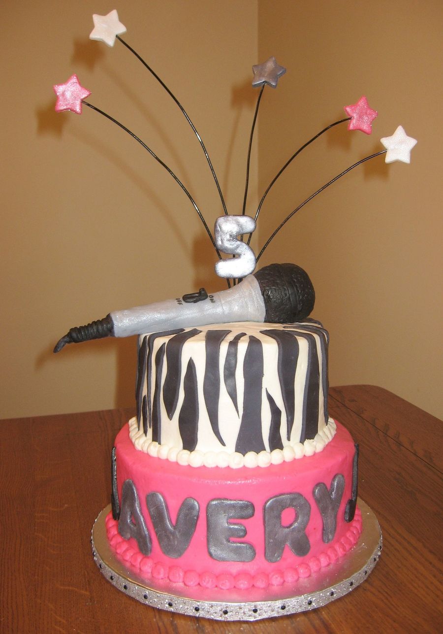 Buttercream iced cake with fondant letters/microphone.
